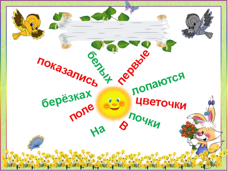 На берёзкахбелыхлопаютсяпочкиВ полепоказалисьпервыецветочки
