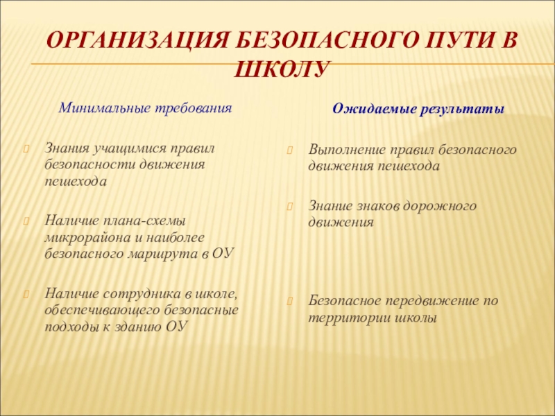 Слайд 22ОРГАНИЗАЦИЯ БЕЗОПАСНОГО ПУТИ В ШКОЛУ