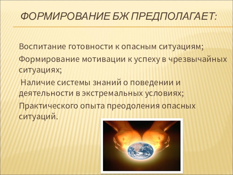 Слайд 28ФОРМИРОВАНИЕ БЖ ПРЕДПОЛАГАЕТ: