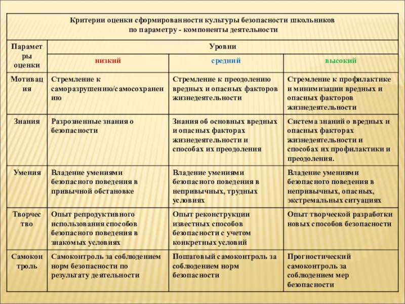 Наличие системы знаний о поведении и деятельности в экстремальных условиях;
