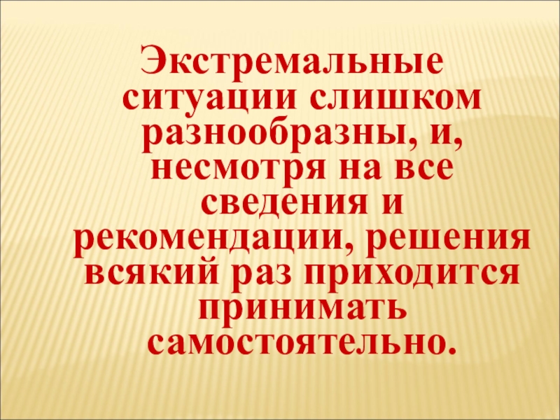 Экстремальные ситуации слишком разнообразны, и, несмотря на все сведения и рекомендации,