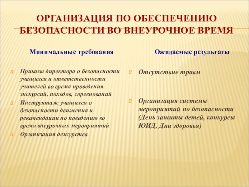 Слайд 27ОРГАНИЗАЦИЯ ПО ОБЕСПЕЧЕНИЮ БЕЗОПАСНОСТИ ВО ВНЕУРОЧНОЕ ВРЕМЯ