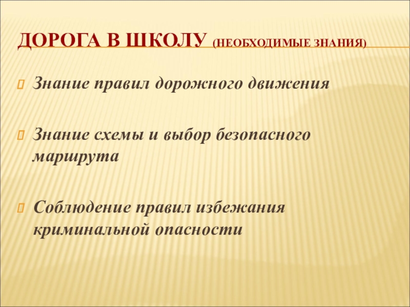 Слайд 23ДОРОГА В ШКОЛУ (НЕОБХОДИМЫЕ ЗНАНИЯ)