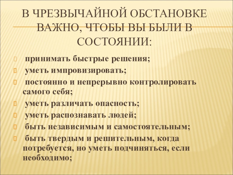 Слайд 16В ЧРЕЗВЫЧАЙНОЙ ОБСТАНОВКЕ ВАЖНО, ЧТОБЫ ВЫ БЫЛИ В СОСТОЯНИИ: