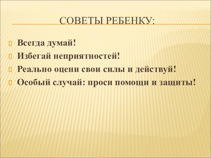 Слайд 15СОВЕТЫ РЕБЕНКУ: