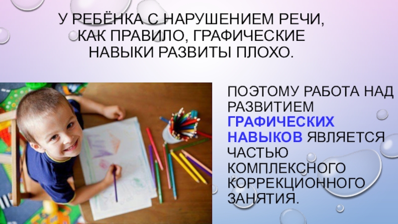 Слайд 20У РЕБЁНКА С НАРУШЕНИЕМ РЕЧИ, КАК ПРАВИЛО, ГРАФИЧЕСКИЕ НАВЫКИ РАЗВИТЫ ПЛОХО.