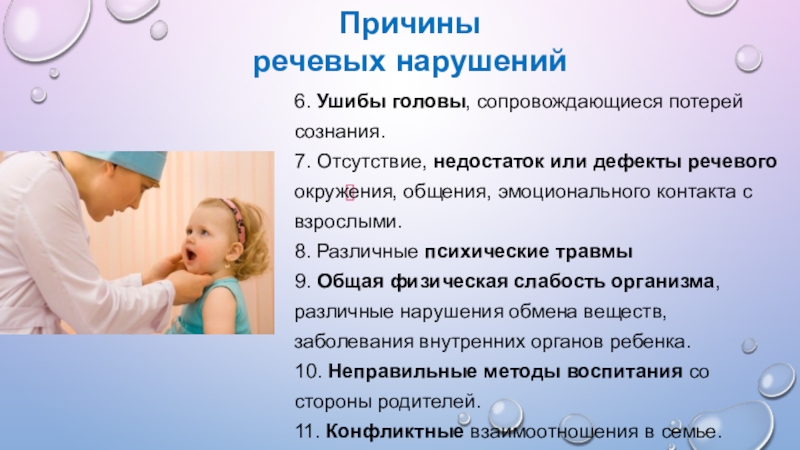 9. Общая физическая слабость организма, различные нарушения обмена веществ, заболевания внутренних органов ребенка.