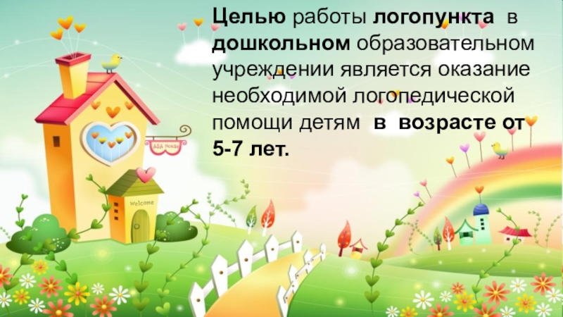 Слайд 3Целью работы логопункта в дошкольном образовательном учреждении является оказание необходимой логопедической