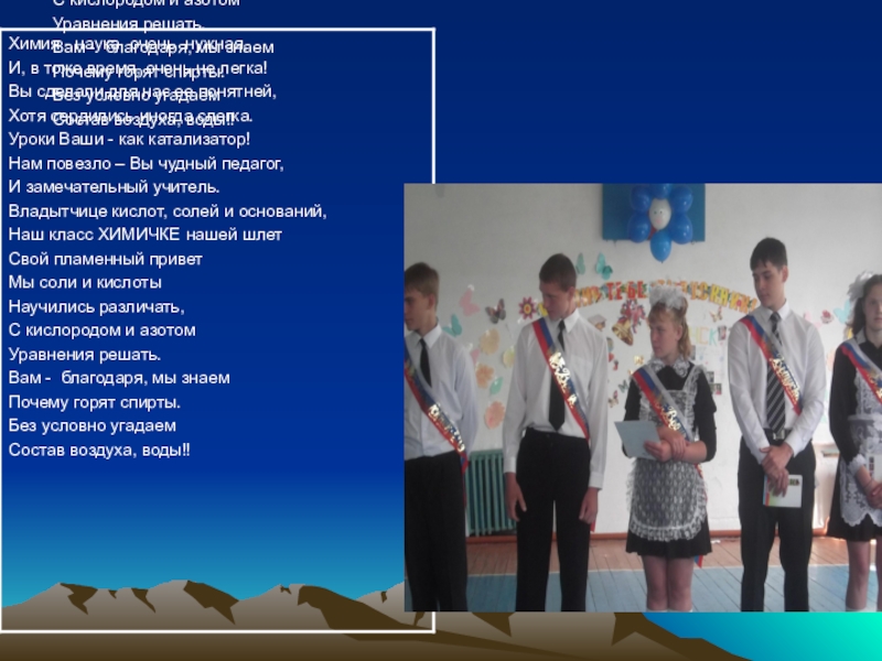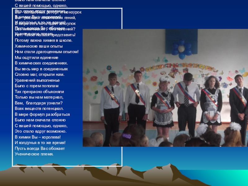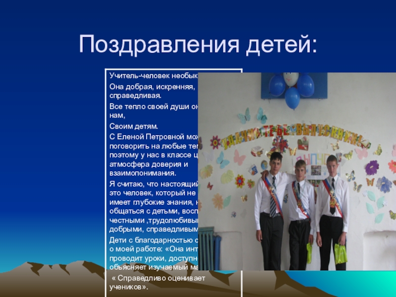 Очень приятно, когда твою работу оценивают положительно не только дети, но и их родители. Самое значимое мероприятие в старшем звене это « Последний звонок», к этому мероприятию идет подготовка совместно с родителями и детьми, ведь получение документа об образовании самый главный итог школьной жизни.