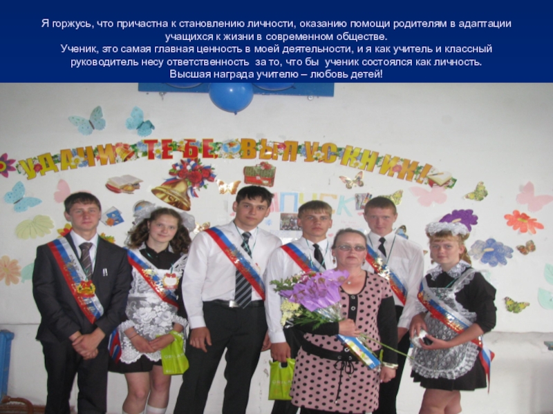 Слайд 6Я горжусь, что причастна к становлению личности, оказанию помощи родителям в