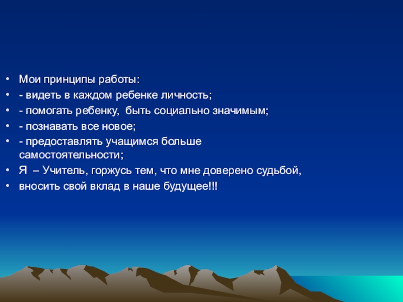Я – Учитель, горжусь тем, что мне доверено судьбой,