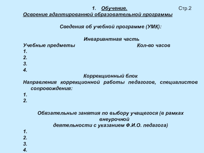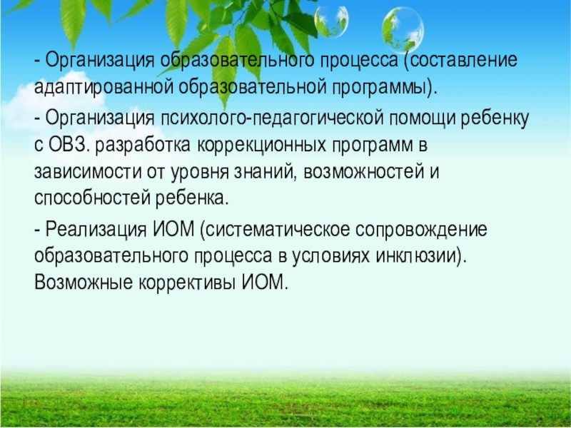 - Организация образовательного процесса (составление адаптированной образовательной программы).