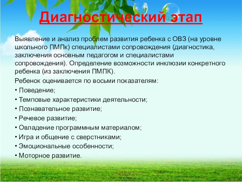 уровне школьного ПМПк) специалистами сопровождения (диагностика, заключения основным педагогом и специалистами сопровождения). Определение возможности инклюзии конкретного ребенка (из заключения ПМПК).