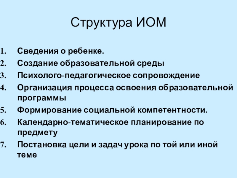 ИОМ — это официально установленный документ, регламентирующий и определяющий содержание коррекционно-развивающей