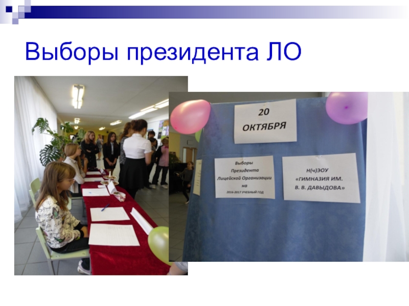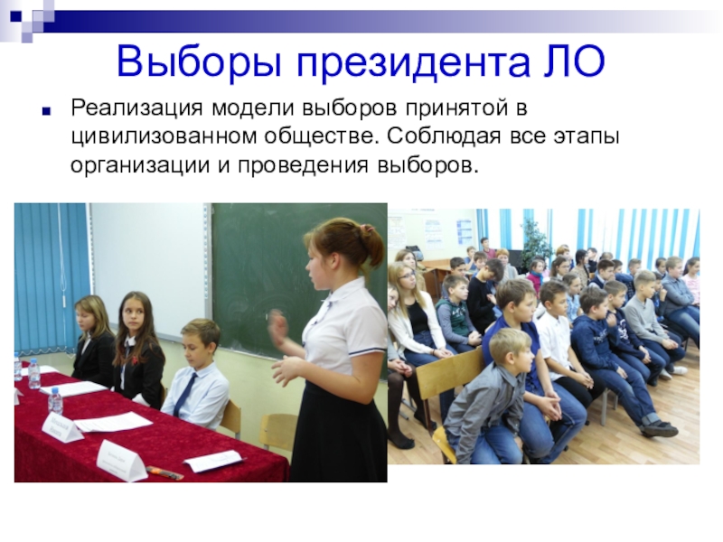 Выборы президента ЛОРеализация модели выборов принятой в цивилизованном обществе. Соблюдая все этапы организации и проведения выборов.