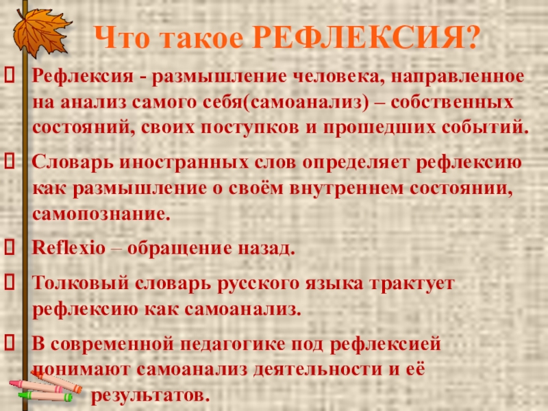 В современной педагогике под рефлексией