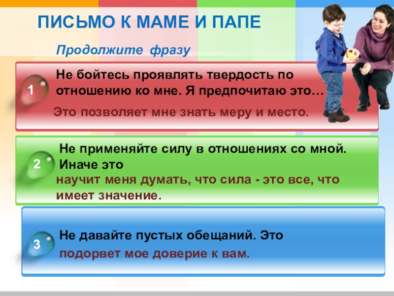 Родители влияют на поведение ребенка методами поощрения или наказания.