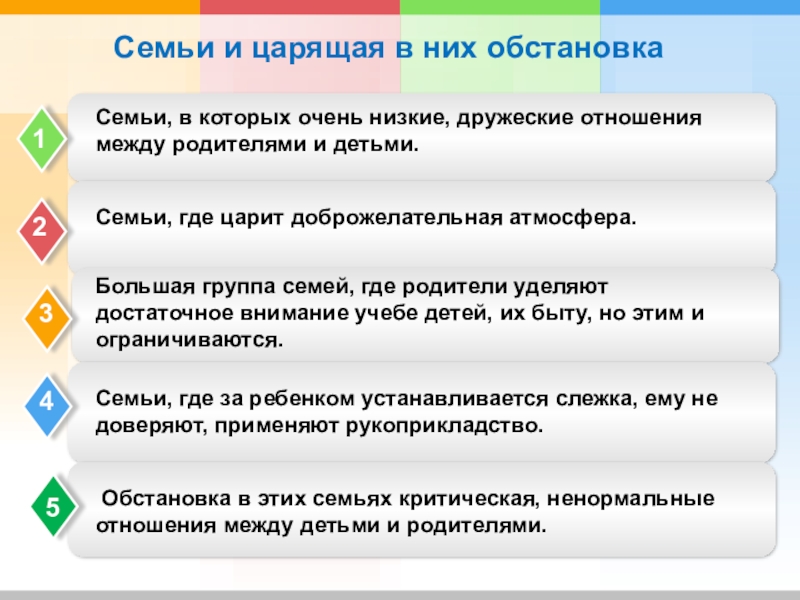 Обстановка в этих семьях критическая, ненормальные отношения между детьми и родителями.