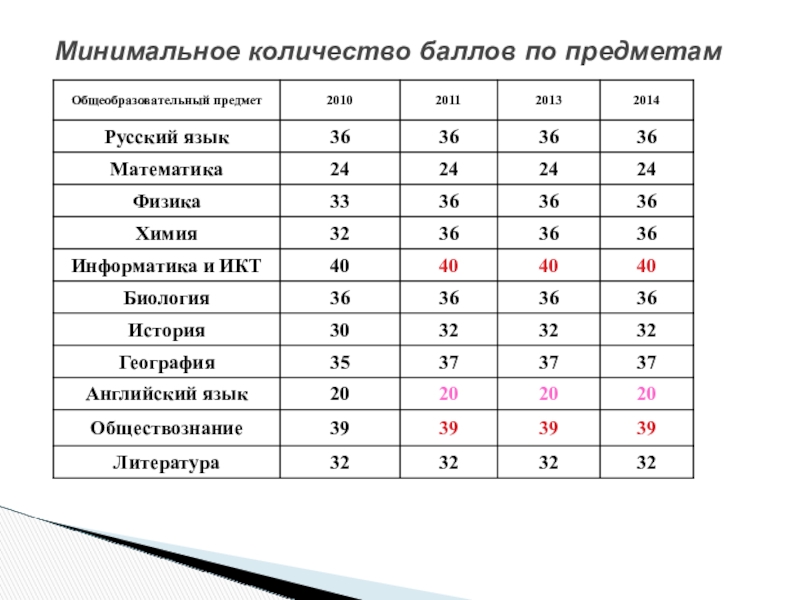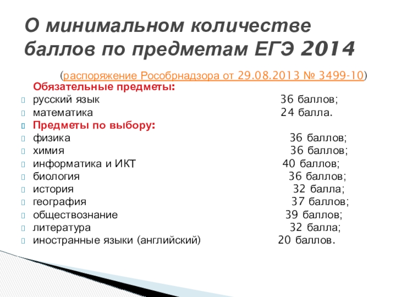 О минимальном количестве баллов по предметам ЕГЭ 2014
