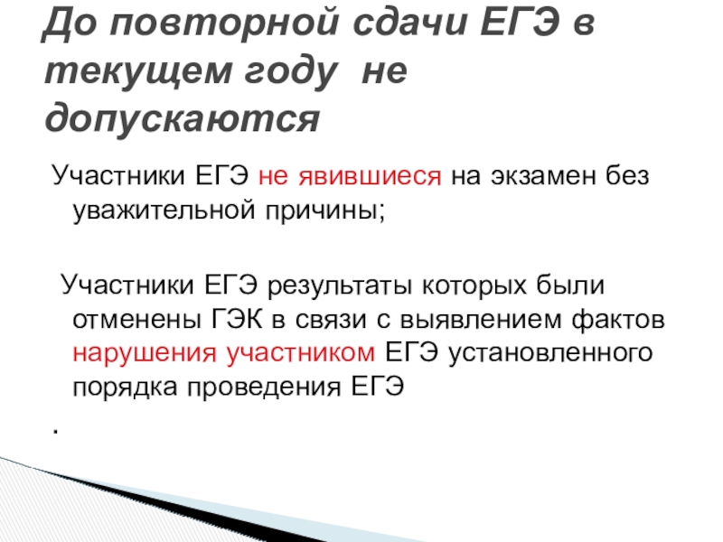 До повторной сдачи ЕГЭ в текущем году не допускаются