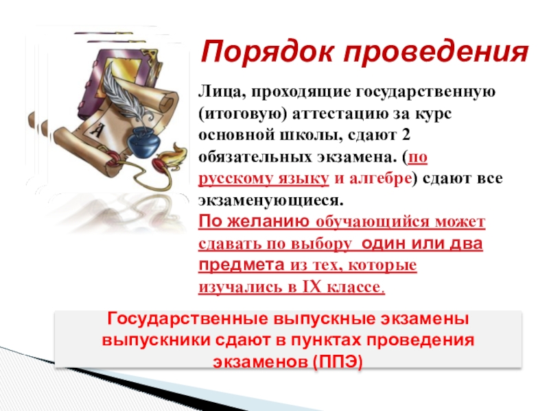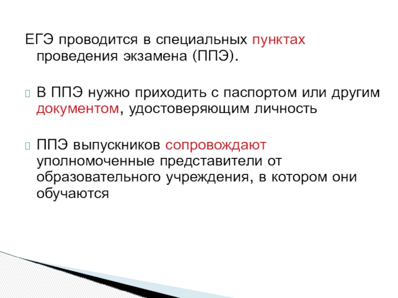 Государственные выпускные экзамены выпускники сдают в пунктах проведения экзаменов (ППЭ)