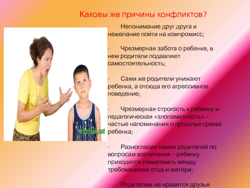 · Непонимание друг друга и нежелание пойти на компромисс;