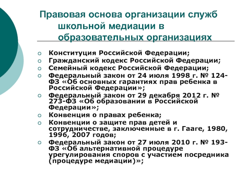 Слайд 8Правовая основа организации служб школьной медиации в образовательных организациях