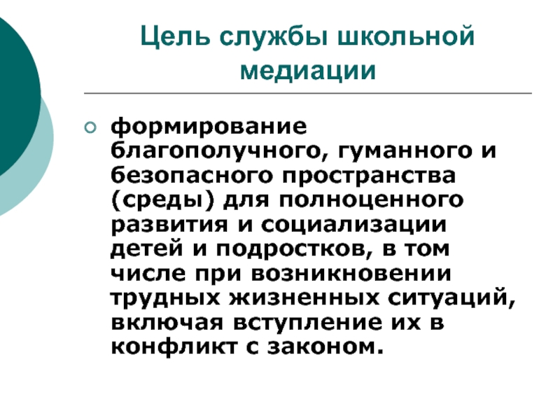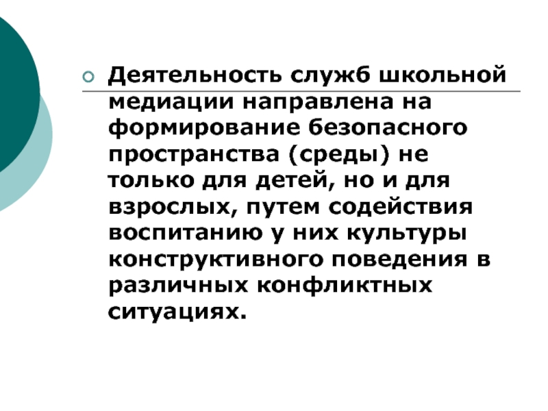 Деятельность служб школьной медиации направлена на формирование безопасного пространства (среды) не