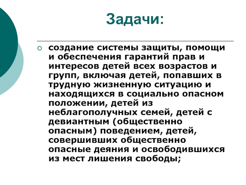 создание системы защиты, помощи и обеспечения гарантий прав и интересов детей