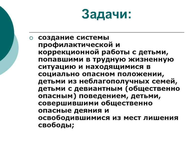 создание системы профилактической и коррекционной работы с детьми, попавшими в трудную