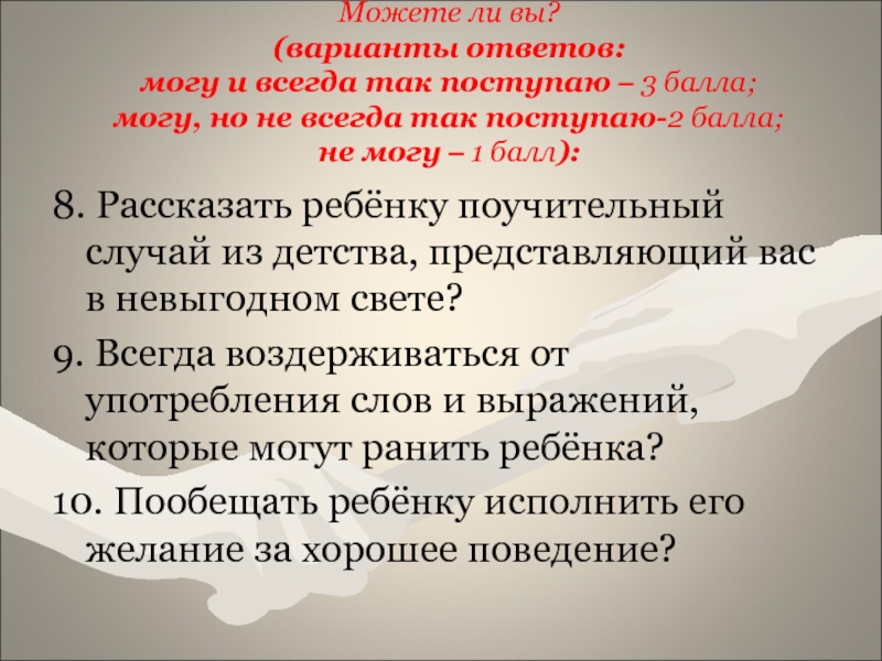 9. Всегда воздерживаться от употребления слов и выражений, которые могут ранить ребёнка?