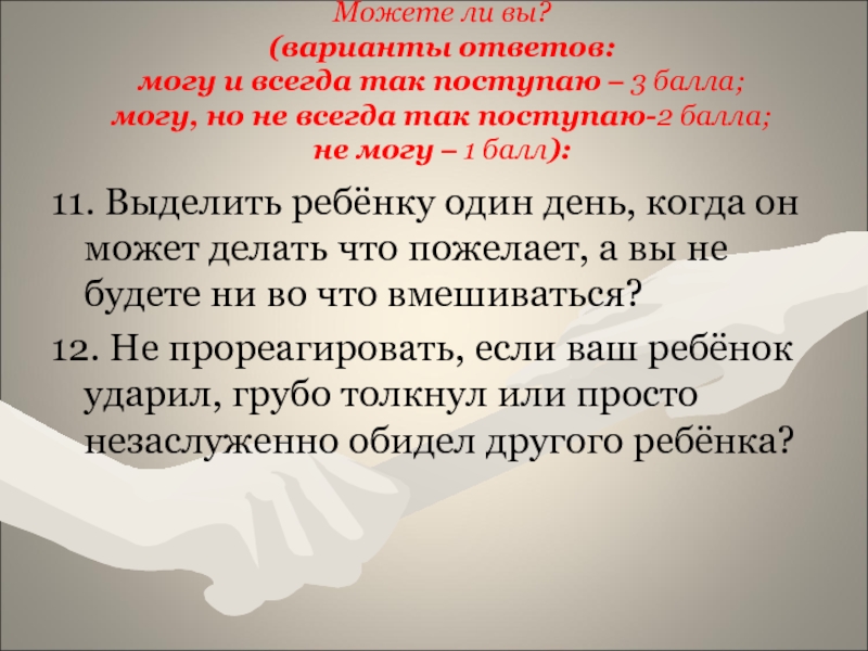 12. Не прореагировать, если ваш ребёнок ударил, грубо толкнул или просто незаслуженно обидел другого ребёнка?