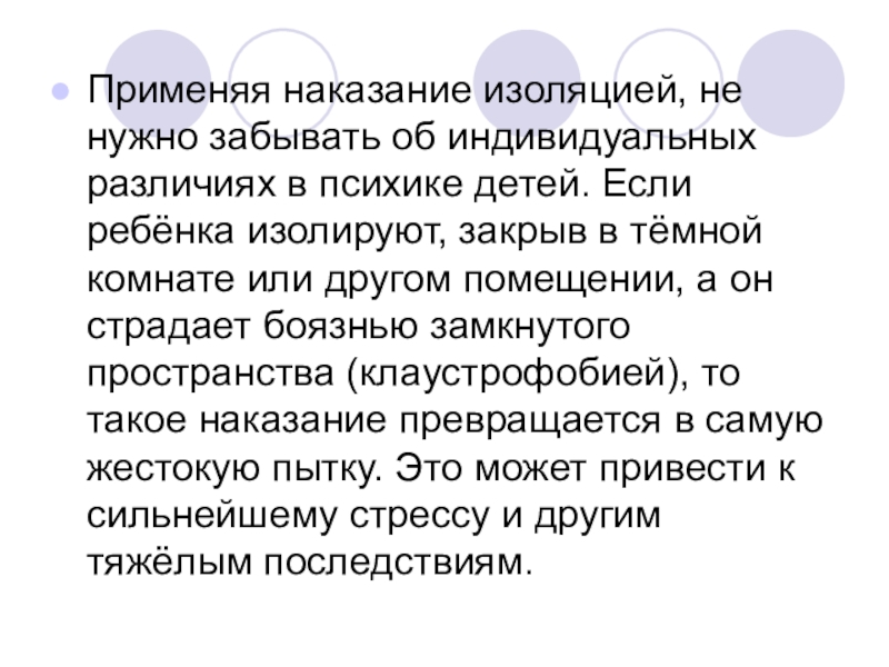 Слайд 15Применяя наказание изоляцией, не нужно забывать об индивидуальных различиях в психике