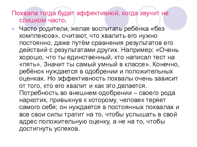 Слайд 25Похвала тогда будет эффективной, когда звучит не слишком часто.