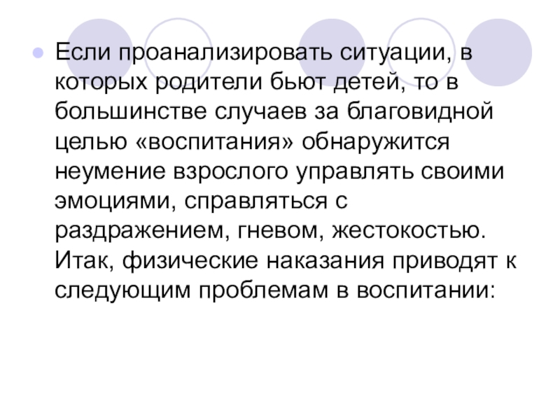 Слайд 7Если проанализировать ситуации, в которых родители бьют детей, то в большинстве