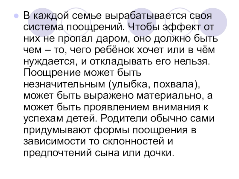 Слайд 27В каждой семье вырабатывается своя система поощрений. Чтобы эффект от них