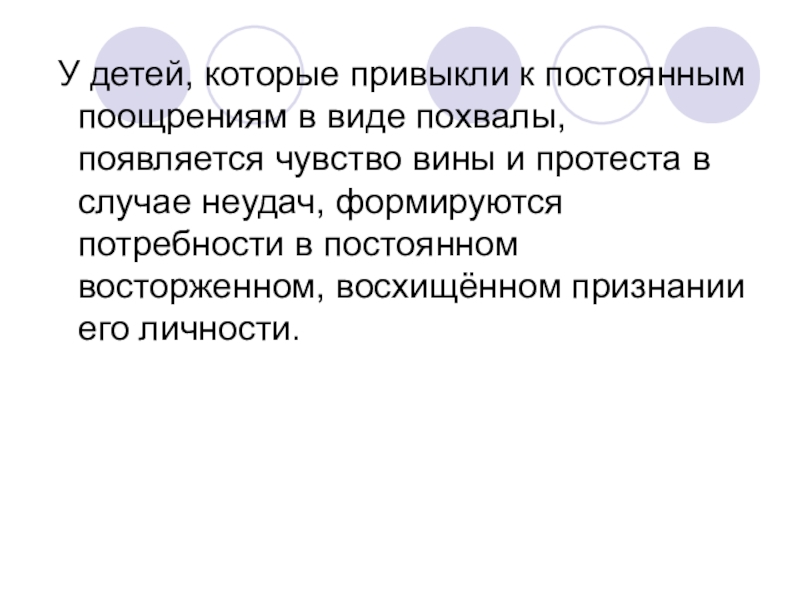 Слайд 26 У детей, которые привыкли к постоянным поощрениям в виде похвалы,