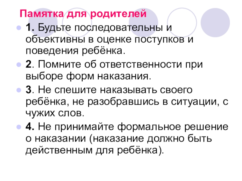 4. Не принимайте формальное решение о наказании (наказание должно быть действенным для ребёнка).