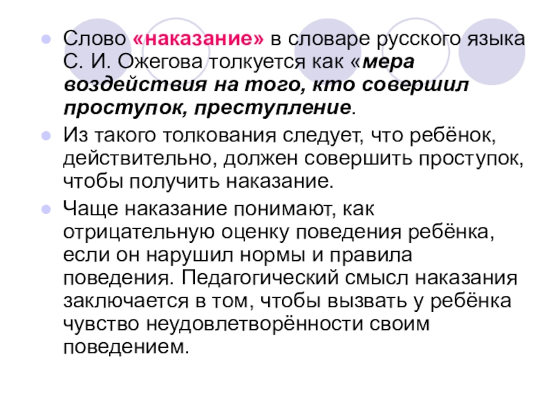 Слайд 4Слово «наказание» в словаре русского языка С. И. Ожегова толкуется как