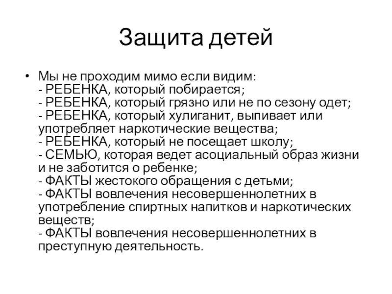 • 80% случаев – дети попадают в приюты и детские дома из-за невыполнения родителями своих прямых обязанностей по воспитанию, что создаёт реальную угрозу их жизни и здоровью.