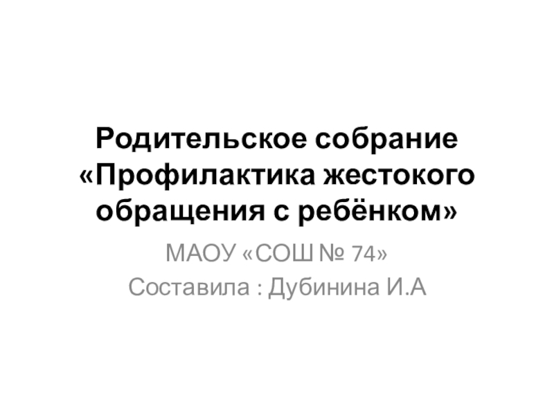 Слайд 1Родительское собрание «Профилактика жестокого обращения с ребёнком»