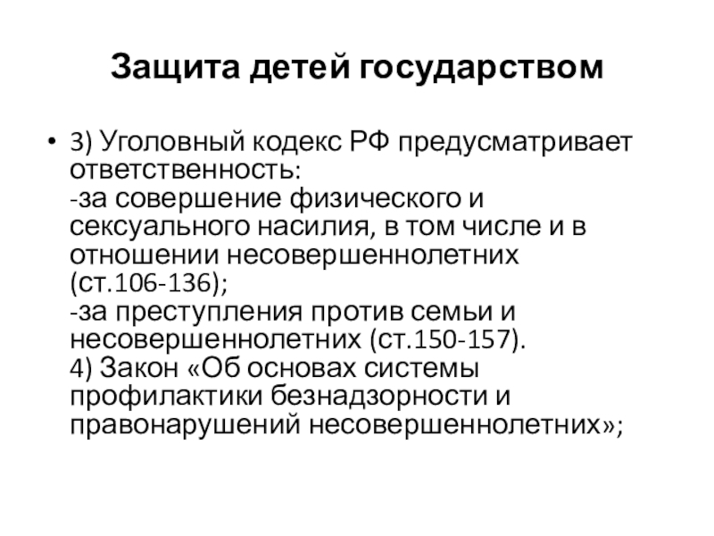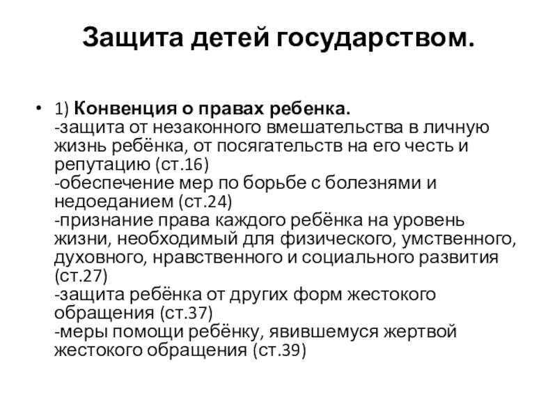 -защита ребёнка от других форм жестокого обращения (ст.37)