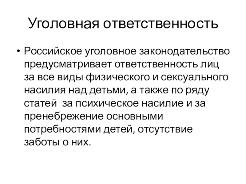 Российское уголовное законодательство предусматривает ответственность лиц за все виды физического