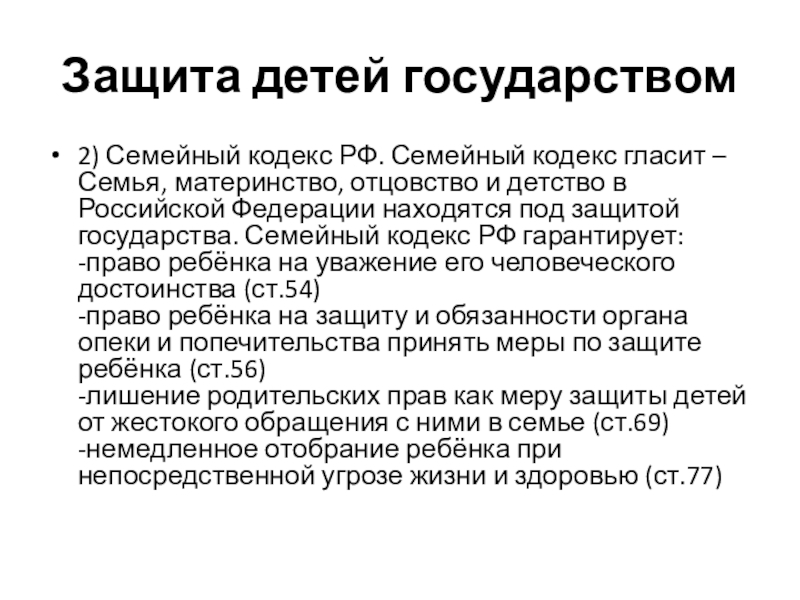 материнство, отцовство и детство в Российской Федерации находятся под защитой государства. Семейный кодекс РФ гарантирует: