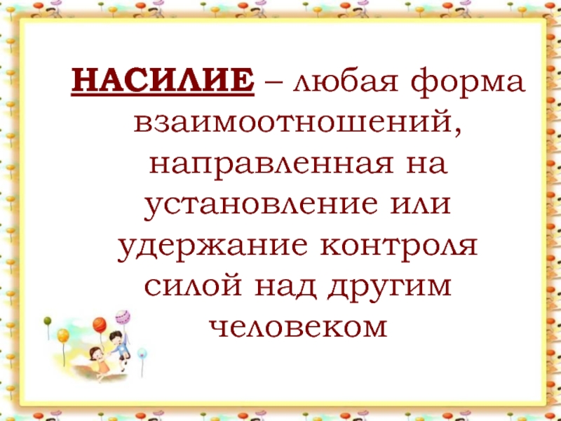 Слайд 5НАСИЛИЕ – любая форма взаимоотношений, направленная на установление или удержание контроля