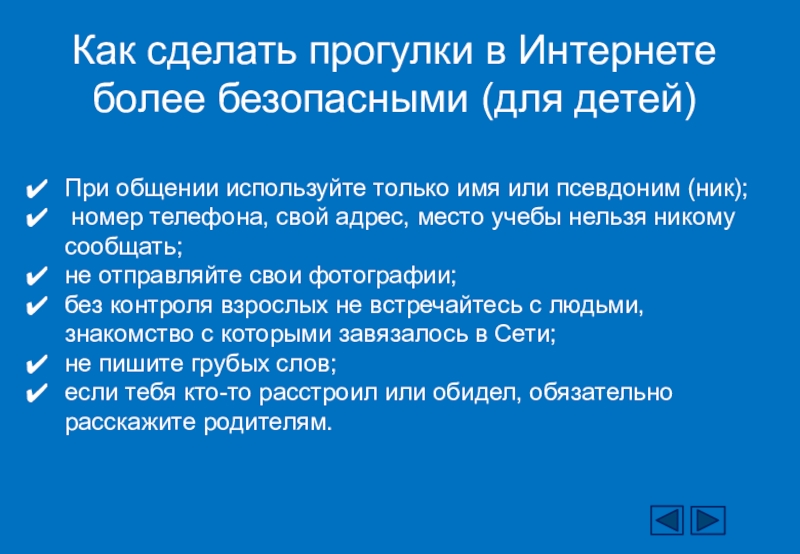 без контроля взрослых не встречайтесь с людьми, знакомство с которыми завязалось в Сети;