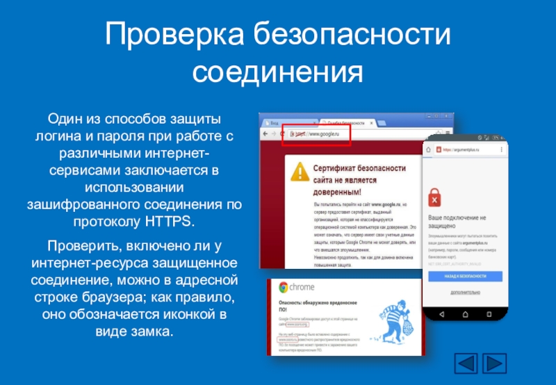 Проверить, включено ли у интернет-ресурса защищенное соединение, можно в адресной строке браузера; как правило, оно обозначается иконкой в виде замка.
