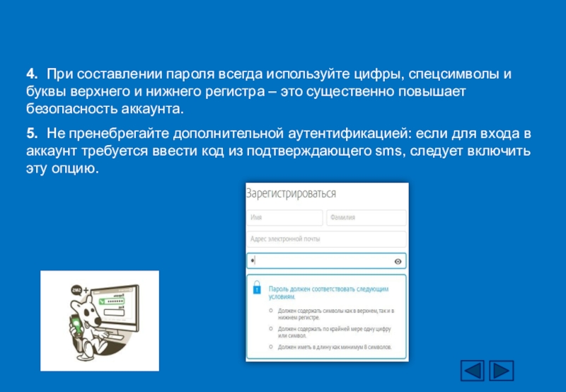 Слайд 114. При составлении пароля всегда используйте цифры, спецсимволы и буквы верхнего