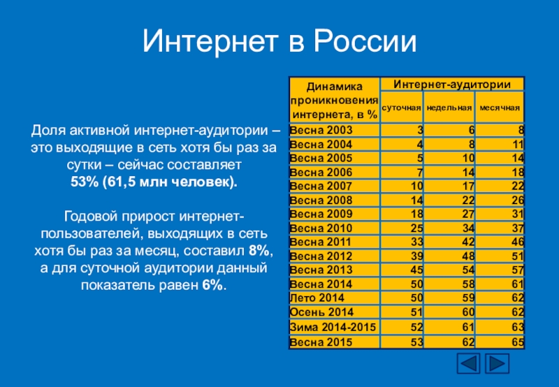 Доля активной интернет-аудитории – это выходящие в сеть хотя