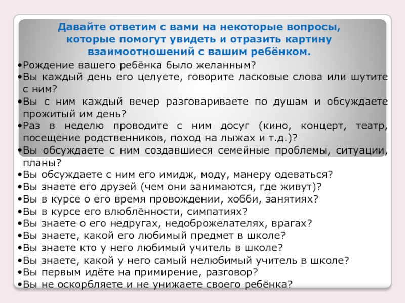 Вы обсуждаете с ним создавшиеся семейные проблемы, ситуации, планы?